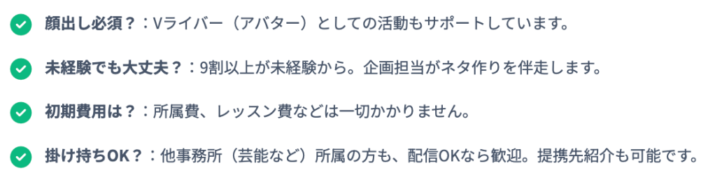 ・圧倒的な企画サポート:配信ネタに困らない、事務所独自のコンテンツ案を提供。